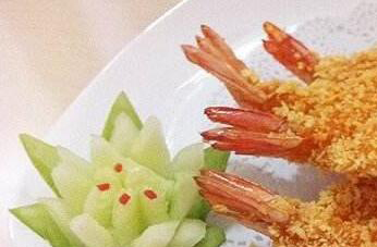 2、把处理好的大虾放入料酒,食用盐和胡椒粉调匀以后腌制10分钟,在它们的表面沾上薄薄的一层淀粉,再裹上调好的蛋液,最后把处理好的虾放在面包糠里按压一下,让它的表面裹满面包糠,最后放在油锅中炸到表面金黄,出锅沥油就是美味的炸虾。