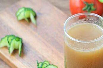 2、如果家中没有果汁机,也能轻松做出好喝的西红柿汁,在做的时候要准备一块干净的纱布,然后把自然熟透的西红柿洗净后去掉表皮,再把它切成块状然后把切好的西红柿骨肉放在干净纱布中包紧用力挤压,这时就会有大量的果汁流出,把它们收集起来就是好喝的西红柿汁。