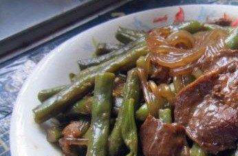 将紫芸豆摘成两三厘米长的小段,用清水洗干净后,沥干水分。将肉切成块状,放到锅子里面爆炒,直至,肉块出很多油。将肉捞出放到盘子里面,将蒜头、姜丝放到锅子里面爆香后,将紫芸豆放入锅子,翻炒片刻,再加入少量水煮熟。几分钟,放入盐,倒入炒好的肉块,翻炒片刻即可出锅。
