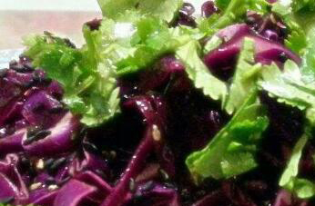 紫甘蓝可以做成凉拌菜在吃,在制作的时候需要把紫甘蓝洗净以后切成细丝,然后加入适量食用盐,调匀以后腌制十分钟,把腌出的水分倒掉,然后在另外的碗中加入适量食用盐和白糖以及白醋,再加入适量鸡精调成料汁,调匀以后,直接把料汁加入到烟火的紫甘蓝中调匀,撒上适量的白芝麻就可以吃。