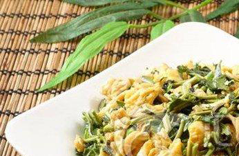 鹅蛋中含有较高的铁质和钙质,而椿芽中含有大量的蛋白质和维生素C,用鹅蛋炒椿芽,可以让两者的营养物质结合在一起,起到补血补铁的作用。身体虚弱、贫血的妇女可以多吃,不过,内脏损伤的患者禁食。
