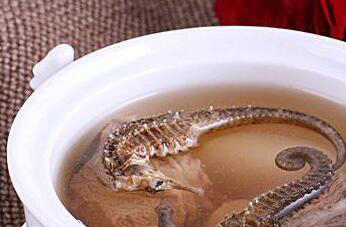 2、把准备好的新鲜海马去掉内脏以后用清水洗净,牡蛎肉提前洗净,紫菜用温水泡水,淡菜也清洗干净。把处理好的所有食材一起入锅,加清水和自己喜欢的调味料,一起加热煮开,再煮十分钟加芝麻油和鸡精提味,做好以后出锅就能食用。海马煲汤时还能搭配多种不同的食材,乌鸡、鸽子以及羊肉等就都是新鲜海马煲汤的理想搭档。