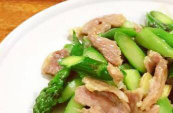1、长芦笋炒肉片是它的家常做法,在做的时候需要准备新鲜长芦笋250克,五花肉150克,生姜和葱花各适量准备一些,另外还要准备适量的植物油和食用油与鸡精。