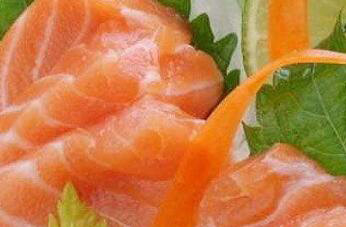 2、做刺身也是生吃三文鱼的正确吃法,在制作时需要准备,新鲜三文鱼,鱼柳300克,白萝卜和绿芥末酱各适量,另外还要准备小块黄瓜,和适量的酱油。把准备好好的新鲜三文鱼,洗净以后切成薄片儿,直接放在盘子上的冰块儿上,吃的时候搭配黄瓜和白萝卜丝,再醮食芥末酱和酱油就可以。