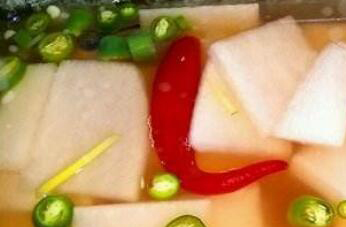 2、准备好的葱姜也要洗净以后切成丝状,然后把准备好的泡菜再切成块状,把炒锅放在火烧,烧干,然后把五花肉入锅煎至间除油脂以后,放入香菇丝和泡菜以及豆腐翻炒一会儿,再加入适量的清汤,开锅以后放入适量酱油和白糖调味,在出国以前放入葱妻丝以及少量味精进行提味即可。