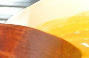 3、把准备好的奶油放到锅中加热化开,再把洋葱切成丁状,直接放到奶油中炒匀,随后放入准备好的面粉,炒匀取出直接放到煮软以后的南瓜中,这时要用勺子快速把它们搅拌均匀,等制成浓稠的酱状以后,再加入食用盐和白胡椒粉。