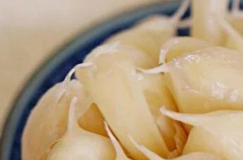 2、蒜头还可以腌制成糖醋风味的腌蒜,在做的时候,需要把醋和糖按1:1的比例准备好,然后把它们入锅加适量清水煮开再煮十分钟左右,取出以后放到干净的玻璃瓶中,再准备适量的新鲜蒜头,去掉外层老皮和根须以后,直接放入到煮好的糖醋汁中,密封浸泡20天蒜头就能变成深红色,而且蒜瓣也会吸收大量的料汁,取出可以直接食用,酸甜味十足特别好吃。