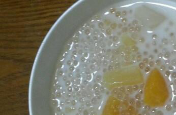 2、西米露在制作时可以搭配适量的牛奶和新鲜的芒果,可以把芒果的果肉分成两份,一份打成果浆和牛奶与西米一起入锅煮开,取出以后降温,装到碗中,再把切好的芒果丁放在煮好的西米露中,然后入冰箱冷藏3到4小时,就是滋味特别好的芒果西米露。