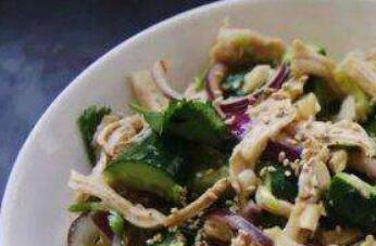 鸡胸肉平时还可以做成凉拌菜,用清水把它煮熟以后取出,降温后用手把它撕成细丝,然后把它和黄瓜丝以及冲刺放在一起,加食用盐和香油,以及香醋调匀,这时一份清爽可口的凉拌鸡胸肉也就做好了。