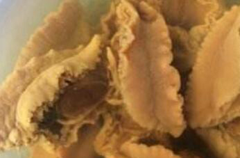2、干鲍鱼用纯净水要浸泡48小时,在浸泡的过程中要经常换水,每隔3到4小时换水一次最合适。把泡好以后的干鲍鱼取出以后,在它的顶部有一个类似于干贝的东西,它也叫鲍鱼肠柱,鲍鱼的肠子就是它的附近,把它去掉以后可以把鲍鱼肠全部去除。