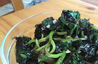 平底锅里放花生油,待油热后,先放入葱末,姜末和蒜末煸炒,待炒出香味后,把红背菜放进锅中,反复翻炒,时间可以自己掌握,我是炒了5分钟,如果想吃熟透一些的,可以多炒一会儿。然后加入盐,鸡精还有少量糖进行调味即可。