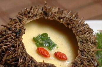 2、把米饭中加入适量清水烧开以后再煮十五分钟,把海胆外壳去掉,加入到煮好的米饭中,调匀用中火煮五分钟,最后加入准备好的其他调味料,调匀以后直接出锅就可以。