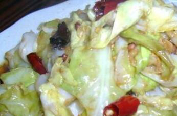 3、等闻到辣椒香气以后再把洋白菜入锅快速翻炒,等它变软以后加生抽和食用盐调味,淡匀以后直接出锅就能食用。