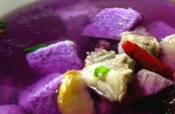 紫心山经与排骨一起做汤也特别好吃,在制作时要把紫心山药洗净切成段状,把排骨和玉米也全部切成段状,排骨要用沸水焯烫一下,然后与其他食材一起放入到砂锅中,加适量清水和两片生姜,用大火烧开再把火力调成中小火,慢慢煲制两小时,出锅前加食用盐调味就可以。