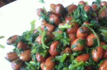 香菜平时可以和花生米放在一起吃,在吃的时候准备香菜一小把,花生米适量,油盐、糖醋各适量准备一些。在油锅中炸熟,再把准备好的香菜清洗干净,用沸水焯烫一下,取出以后与炸熟的花生米放在一起,再加入油盐,糖醋等调味料调匀以后就可食用。