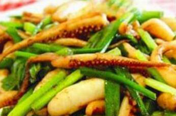 1、韭菜苔炒鱿鱼须也特别好吃,在炒的时候需要准备鱿鱼须三百克,韭菜苔二百克,小米椒三个,食用盐和料酒以及蒜与糖还有食用油等调味料都要适量准备一些。