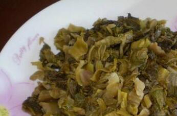 3、泡制三到五天以后,里面的菜苔就会变成暗黄色,而且它的味道也已经微微发酸,这时可以把它取出用清水反复的清洗,如果吃不完则可以把它继续浸泡在水中。但每天要换水二到三次。
