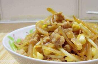 鲜嫩的豆芽还可以和腌好的萝卜咸菜搭配在一起调成下饭小菜,在制作时,需要把准备好的咸菜洗净以后切成细丝状,然后再放在清水中浸泡两个小时,取出以后切适量葱花,在锅中放油,把葱花炒香,随后把萝卜咸菜入锅炒熟。在炒萝卜咸菜的同时,要把鲜嫩的豆芽处理干净以后用沸水焯烫,焯熟以后取出,挤掉水分,直接调入到炒好的萝卜咸菜中,调匀以后就能食用。