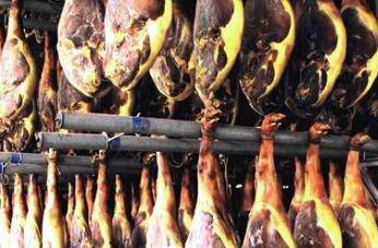 腌制金华火腿的最后一步就是风干发酵,也就是把晒好以后的金华火腿悬挂在通风干燥的地方,随着气温的升高,火腿表面就会开始自然发酵,这是他的表面上会长出一些绿色或者绿灰色的菌,它们的出现是金华火腿发酵良好的表现。再过一段时间,金华火腿就能发酵完成,这时整个火腿就会散发出特殊甘醇的清香味。