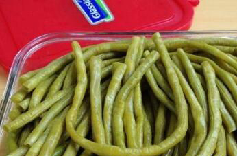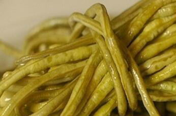 腌好以后的酸豆角,取出以后可以直接切成小段儿,加入麻油调匀以后当凉拌菜食用,也可以把它洗净以后切成小段儿,与肉丁一起炒熟后食用。腌好以后的酸豆角要随吃随取,每次取出以后,如果吃不完,不能再重新放入到泡菜坛子中,不然会影响坛子中的其他酸豆角,会让它们发生变质。