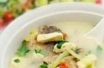 3、把锅中的浮沫去掉,再用中小火慢慢熬制两个小时左右,然后加少量食用盐调味,白嫩嫩的草鱼汤就可以出锅了。