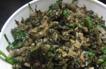 2、把准备好的新鲜的菜苔放在清水中洗净以后去掉水分,加入食用盐调匀以后腌制,腌制过程中要经常翻动,最好能用手搓动,这样能让菜苔吸过充足的食用盐。