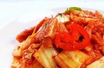 平时腌制辣白菜还有一种最简单的方法就是直接用韩式辣酱来腌辣白菜,这时可以取一颗新鲜的白菜,把它用清水洗干净,以后去掉水分,切成细丝状,然后加入韩式辣酱,再加入少量的鱼露调匀以后放在冰箱中冷藏一天就能入班,第二天取出加少量香油直接食用即可。