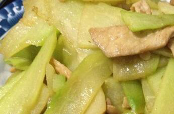佛手瓜炒肉片也是它的常见吃法之一,在炒制以后要把肉片加生抽料酒等食材腌制一下,把佛手瓜切成片状,在锅中放油,把肉片入锅炒到变色再加入葱花炒香,随后把佛手瓜片入锅,用大火快炒,加食用盐调味,炒到佛手瓜变软以后取出就能装盘食用。