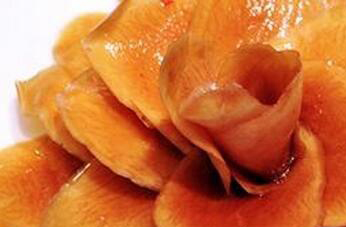 1、把准备好的白萝卜用清水洗净,不要去皮去掉水分以后直接切成片状,去皮以后会影响白萝卜的口感,让腌好的酱萝卜不那么脆嫩。