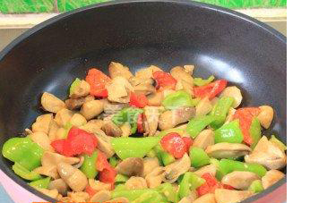 1.草菇洗净后,切成块青红辣椒切滚刀块备用