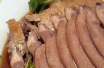 3、煮开以后去掉浮末,再用小火慢慢煮制九十分钟,关火,判断火以后别急着取出,要让口条入味,过几个小时以后取出,切成薄片,用锅中的卤汁浇淋,然后就能食用。