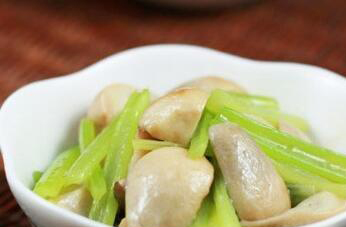 1.芹菜洗净,切断。草菇洗净焯水