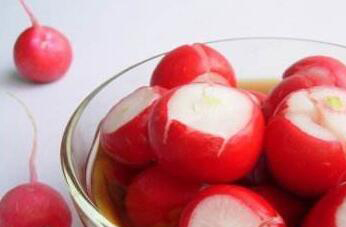 3、把腌好的小红萝卜放在盆中加白糖和白醋调匀,入冰箱腌制三到五天,这时小红萝卜就能入味,尝一个酸甜爽口,特别好吃。