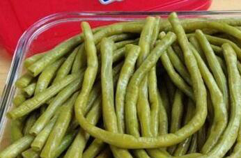 在料汁发酵好以后,可以把准备好鲜豆角放入到坛子中一起腌制,腌制一个星期以后豆角就能变色入味,这时自制的酸豆角也就腌好了,可以直接取出食用,但是取食时用的筷子不能带油,不然豆角会发生变质,另外腌制豆角的坛子和其他用具都要做到无油无水,不然腌出的酸豆角也很容易发生变质。