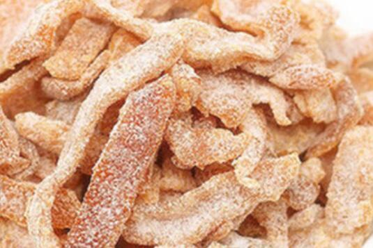 3、把制好的皮坯用清水浸泡,每隔45小时换水一次,大约48小时以后就能把它处理好。甜橙的果皮处理好以后,再准备腌制料,要准备6千克甘草,加入30克清水,煮成25千克的甘草水,再放入30千克的白砂糖和150克糖精钠制成原汁。