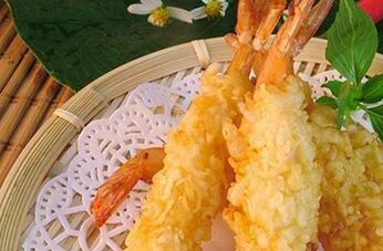 天妇罗在制作时需要准备食用油五百克,新鲜的海虾八只,面粉一百二克和蛋黄一个,冰炎适量白胡椒粒五克,海盐五克。