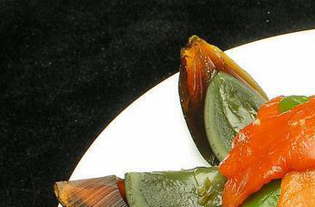 第二步:将皮蛋剥去外壳后切成块。