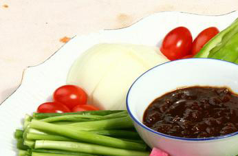 制作大丰收时要把准备好的所有蔬菜全部洗干净并去掉水分,把洋葱和大葱全部去掉外皮,削掉两头以后切成段状。把莴笋也去掉外皮切成六厘米左右的长条。把青萝卜和黄瓜也切成六厘米左右的长条,把处理好的蔬菜装入到大圆盘中,再把甜面酱加入味精和糖以及香油调匀,与蔬菜一起上桌,即是餐厅中常见的大丰收。