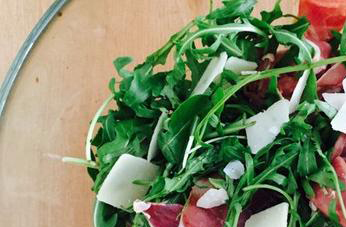 平时制作芝麻菜沙拉时需要准备咸火腿肉两百五十克,芝麻菜两百克,菜油适量,乳酪一百五十克,沙拉酱适量,大蒜两瓣,芥酱适量,白葡萄酒二十克,橄榄油二十克,在盐和黑胡椒各适量准备一些。