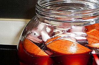 洋葱红酒在制作时需要五百毫升的红酒和两个洋葱,把洋葱清洗干净以后,去掉表层的外皮,然后切成八等份,再把它们装入到玻璃瓶子中,加入红酒,密封放在阴凉的地方十天左右,泡好以后过滤,得到的就是洋葱红酒,需要的时候直接饮用就可以。