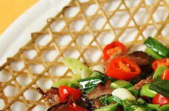 广式腊肉和一般的腊肉不同,广式腊肉的特点就是可以搭配不同的蔬菜来炒着吃,可以搭配四季豆,蒜苗,香干等等。