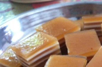 第四步:在马蹄糕片上淋上蜂蜜,同时撒上桂花即可。