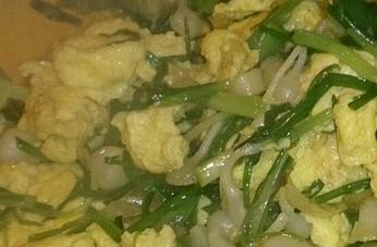 小根蒜炒鸡蛋也是它的常见做法之一,制作时可以把小根蒜用清水洗净,再切成细末,然后加入少量食用盐,再磕入三个鸡蛋调匀,在锅中放油加热以后把蛋液倒入锅中,炒成块状以后直接出锅装盘食用即可。