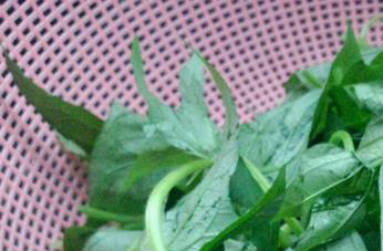 第五步:之后再放入地瓜蔓,搅拌均匀。
