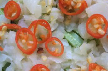 剁椒笋瓜也很好吃,在制作时需要把笋瓜洗好连皮切成细丝,再加入少量食用盐,腌制十分钟,把腌出的水分去掉,加入蒜末和红油以及香油和醋与白糖,最后在上层撒上剁椒,调匀以后就能食用。