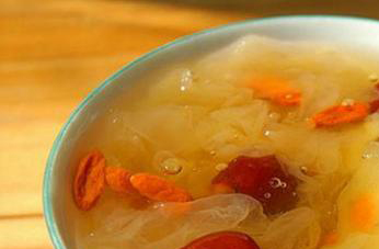 银耳红枣汤也是银耳的美容吃法之一,能滋养皮肤,也能补益气血,制作时要把银耳泡开分成小块,加入十来个红枣,再加入适量的冰糖,一起放入到炖盅,然后加热炖制,开锅以后调小火力,慢慢的煮制十分来分钟,然后关火,取出装碗降温以后就能食用。