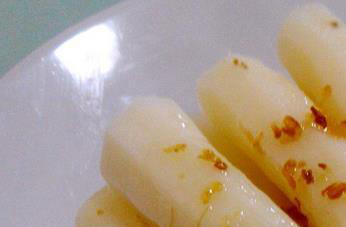 第四步:在山药片上淋上蜂蜜,同时撒上桂花即可。