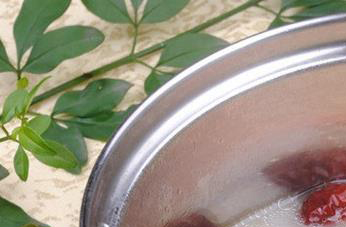 第六步:在清汤中放入鸡精,味精,红枣,花椒和枸杞,调入盐入味即可。