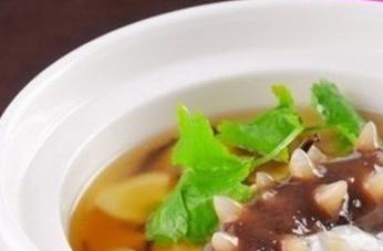 3、把准备好的鸡汤放入到锅中烧开,然后加入味精和盐,调匀,再把蒸好的海参倒入到锅中烧开,再煮制三分钟左右,取出装碗,加入香菜末再加入胡椒粉,调匀以后香气诱的人海参养生汤就做好了。