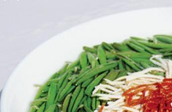 第一步:将鸡胸脯肉切丝,用盐,淀粉和入水后搅拌下,让鸡胸脯肉丝上蘸满淀粉。